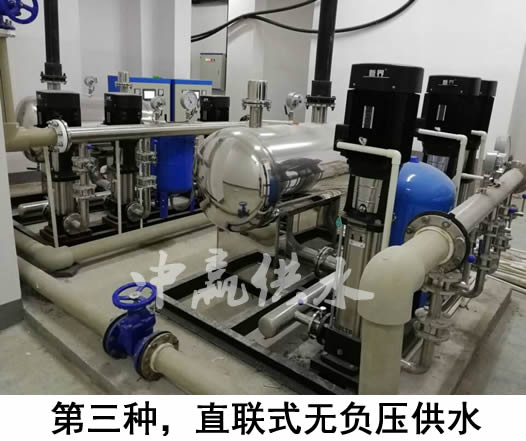第三種:是采用無負壓的供水設備,直接從自來水管道加壓將水送至用戶家中。這種給水方式,沒有二次供水水箱,是目前為衛生的一種給水方式。